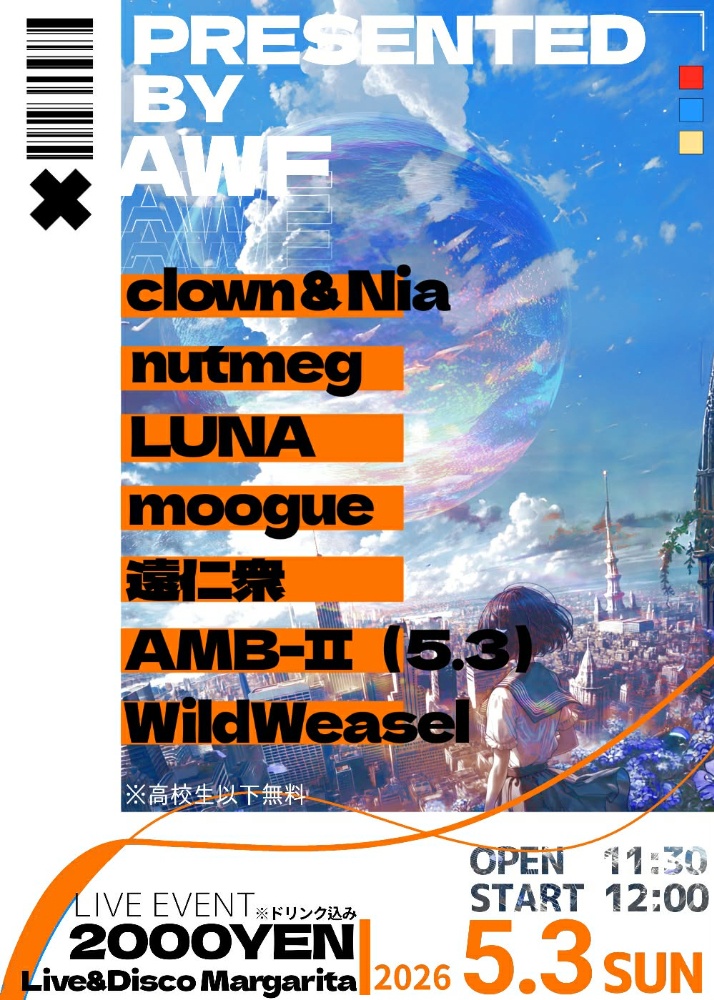 ❤️5月3日(日)Live in Margarita Vol 4 AWF企画open11:30 start12:00 ticket \2000 (高校生以下無料) 1drink 込み❤️5月17日(日) 浜松FORCE